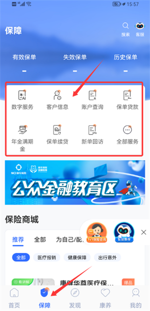 3、首页提供查保单与续期交费等多项服务,可根据需求选择使用。