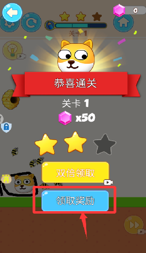 4、恭喜你过关了,点击领取奖励并继续。