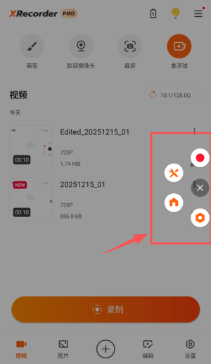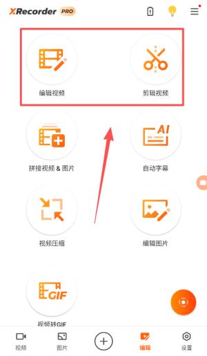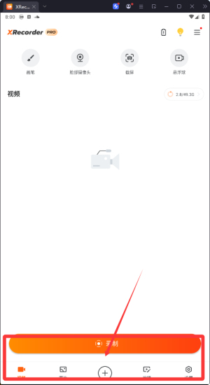 首先。打开xrecorder录屏大师最新版,来到软件首页,点击上方工具栏的第一个选项。如下图所示。