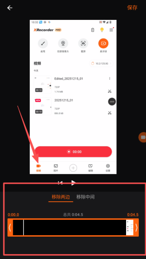 3、结束录制后视频自动保存,在软件内找到文件列表,点击任一视频即可预览播放或进行快速修剪。