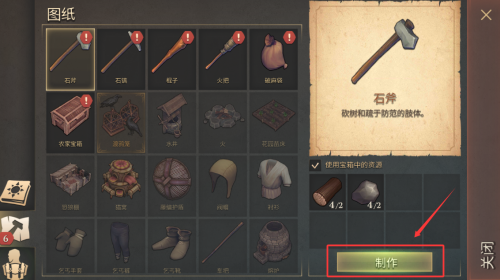 2、在图纸界面找到并制作石斧。