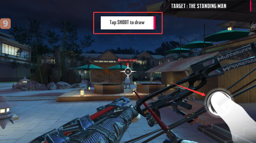 1、点击射击按钮,瞄准并射击站立男性目标。