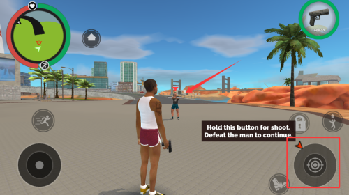 2、按住右下角按钮射击,击败眼前敌人。