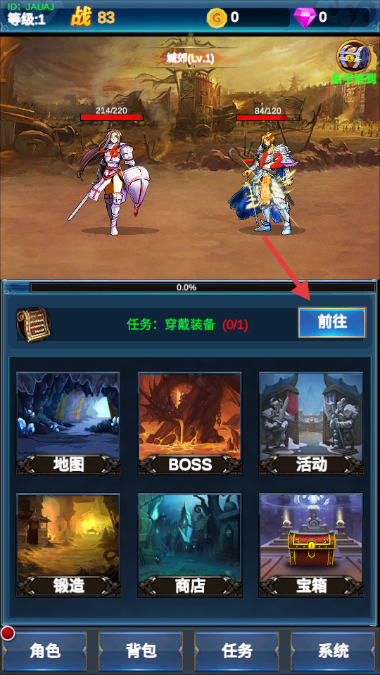1、选择阵营并组建英雄团队,开启自动挂机战斗模式,积累基础资源。