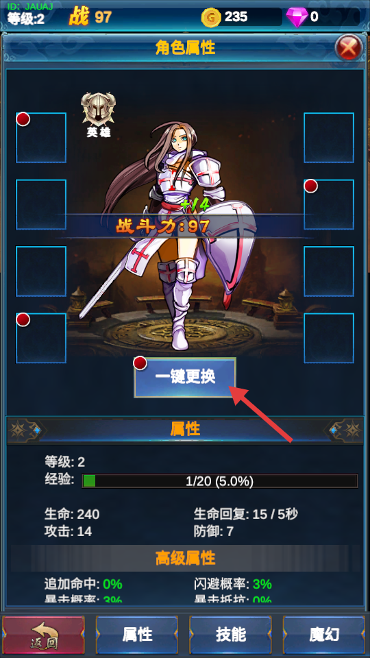 3、各种的顶级装备轻松更换,点击屏幕的空白处即可,增加角色的伤害