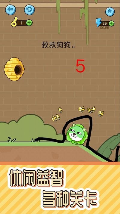 1、核心操作是通过手指在屏幕上画线,为小狗构建安全路径或搭建桥梁。