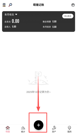 1、下载并打开萌猪记账app,完成账户注册后进入主界面,点击记账按钮开始记录每日收支。
