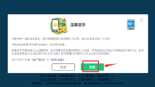 1、点击温馨提示里的同意并继续。