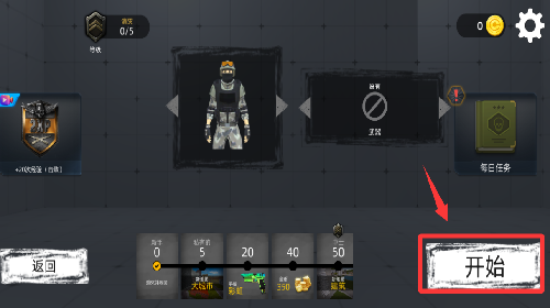 3、选择好装备然后点击开始并进入。