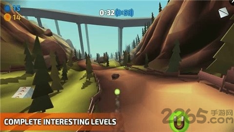 游戏中,你需要控制一个小球在赛道上不停的滚动,边滚动边收集赛道上的道具,道具可使小球加速,然后在规定的时间内到达终点就可以了。是不是很简单。