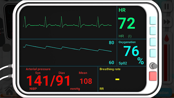 现实医疗模拟器是一个真实的医院救人的模拟游戏,显示心电图,心率,压力,体重,血液氧饱和度/氧合/ spo2 如何在没有真正知识的情况下帮助患者?在游戏中有一个真实的心电监护仪,我仔细研究了理论体系,它是简化的,在这个紧急医疗模拟器中,但解释了几乎所有由医疗助理和紧急护理人员和emt执行的操作。