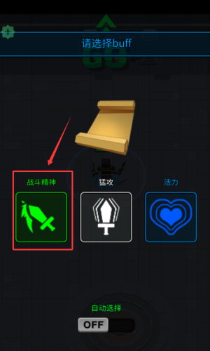 2、在请选择buff界面,点选战斗精神。