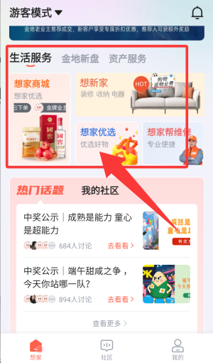 - 想家商城,精选商品,每周特价;宅配服务,水、生鲜、牛奶,日用商品…