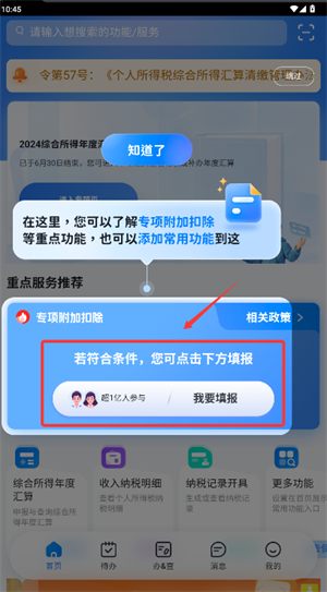 支持个人所得税综合所得年度汇算等纳税申报等操作;