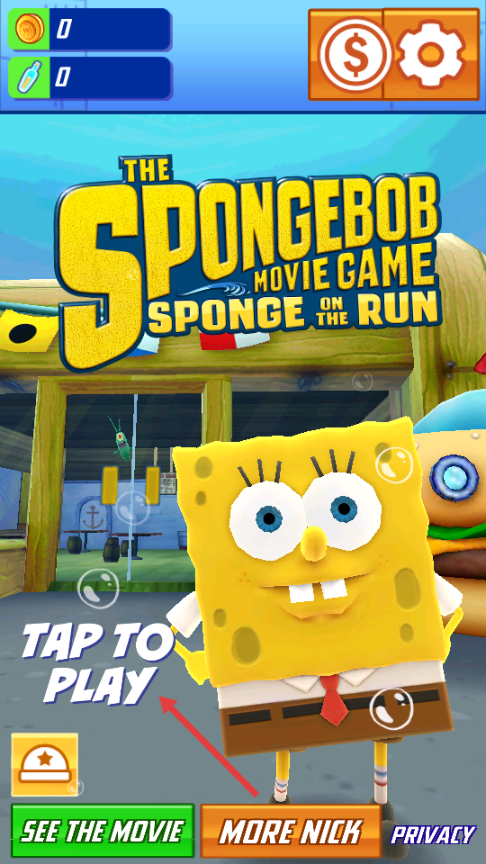 这一次的跑酷新作是根据海绵宝宝的电影版《海绵宝宝:离开了水的海绵宝宝》改编而成的,在游戏中玩家将扮演我们的主角海绵宝宝,
