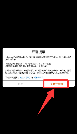 1、点击温馨提示里的同意并继续。