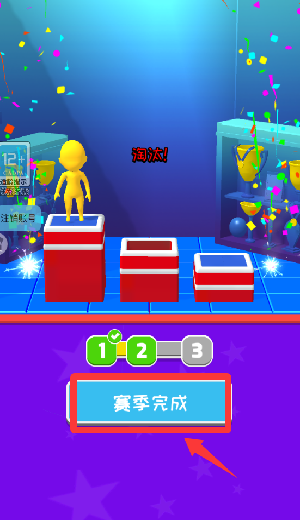 4、恭喜你获得了第一名,点击赛季完成继续。