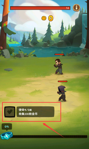 2、完成任务一,收集两百枚金币。