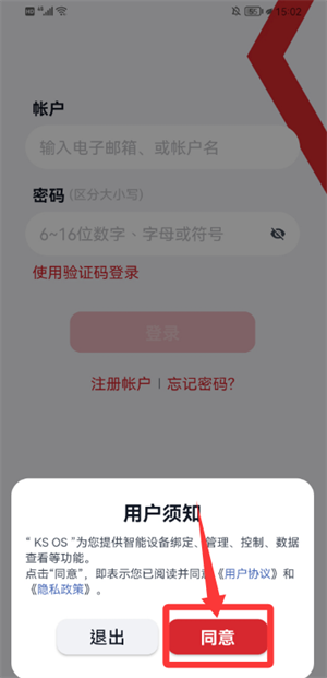 1、打开应用在提示窗内点击同意,确认使用条款。