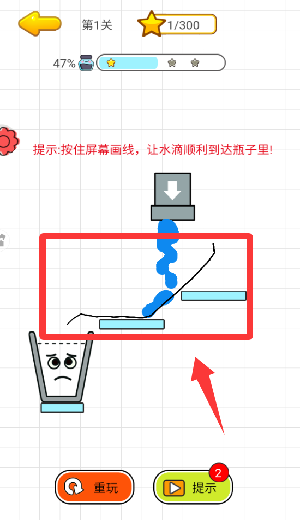 3、点击长按画一条线让水流进杯子就可以过关了。