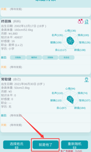 2、点击就是他了按钮,确认角色选择。