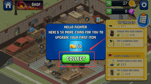 1、点击绿色收集按钮,领取五十枚奖励金币。