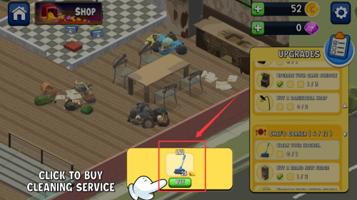 3、点击购买清洁服务,花费金币升级。