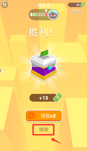 4、恭喜你胜利了,点击领取然后继续下一关。