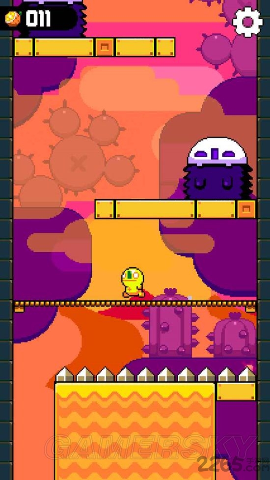 本作延续像素特色,而玩家所要做的就是让屏幕中这个不断来回奔跑的小人跳跃至关卡的最高处,也正因为如此游戏操作只有跳跃一项。当然越简单的才能体现出游戏的难度,守护森严的敌人,密密麻麻的机关,这些都能让小人一击毙命。不过途中玩家也能购买救命道具,游戏玩起来既简单又算不上特别虐心。