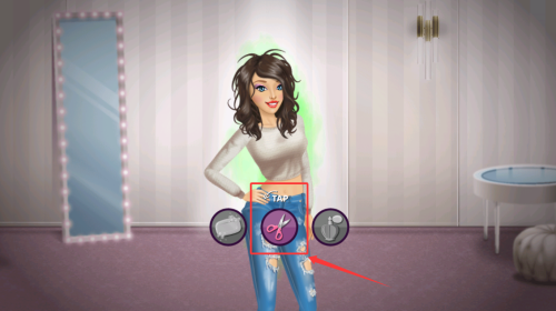 3、在角色裤子上点击TAP框进行裁缝操作。