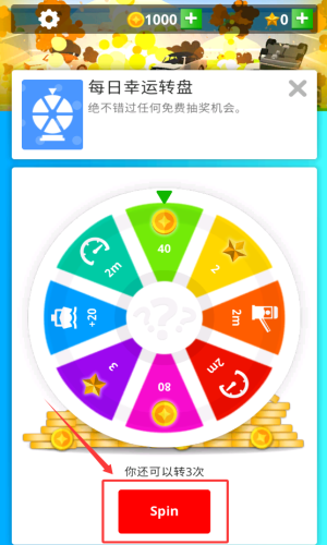 1、点击SPIN按钮免费转动幸运轮盘。