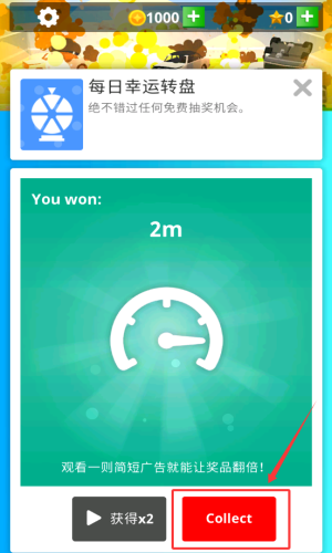 2、点击红色COLLECT按钮直接领取奖励。