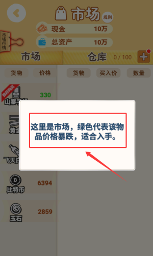 全新创新经营类游戏玩法,通过点击骰子,抓住时机低买高卖各类商品,逐渐积累金钱,发家致富。