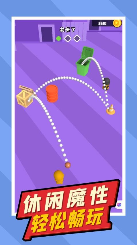 3、操作简单直观,通过拖动调整方向与拉力,释放后小球将沿抛物线飞出,易于上手且富有技巧深度。