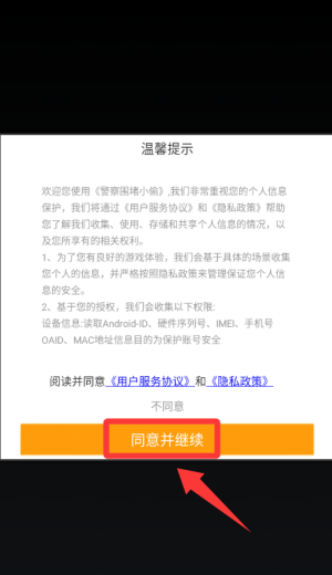 1、点击温馨提示里的同意并继续。