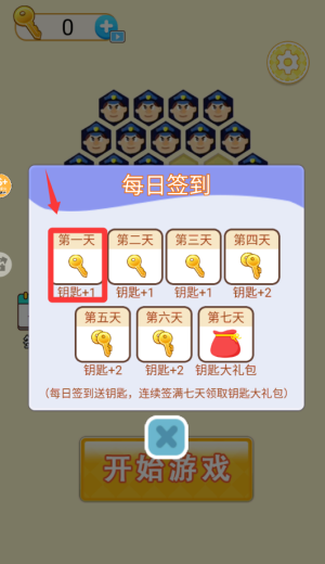 1、游戏内含钥匙道具系统,玩家可通过每日签到获取钥匙,消耗钥匙即可开启新关卡挑战。