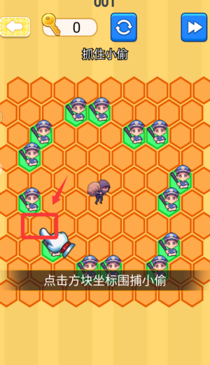 4、点击方块坐标围堵小偷就可以通关了。