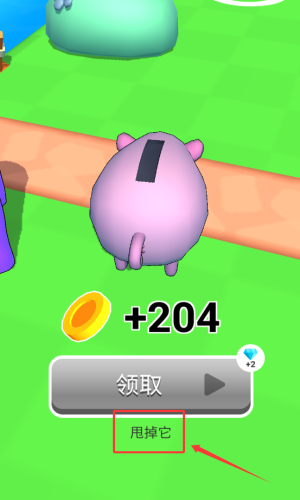 3、点击甩掉它,放弃紫色小猪获得金币。