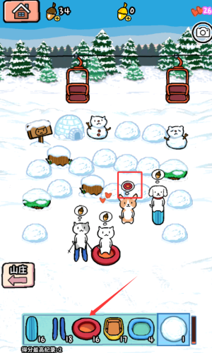 3、选小熊坐红滑雪圈滑雪获得爱心。