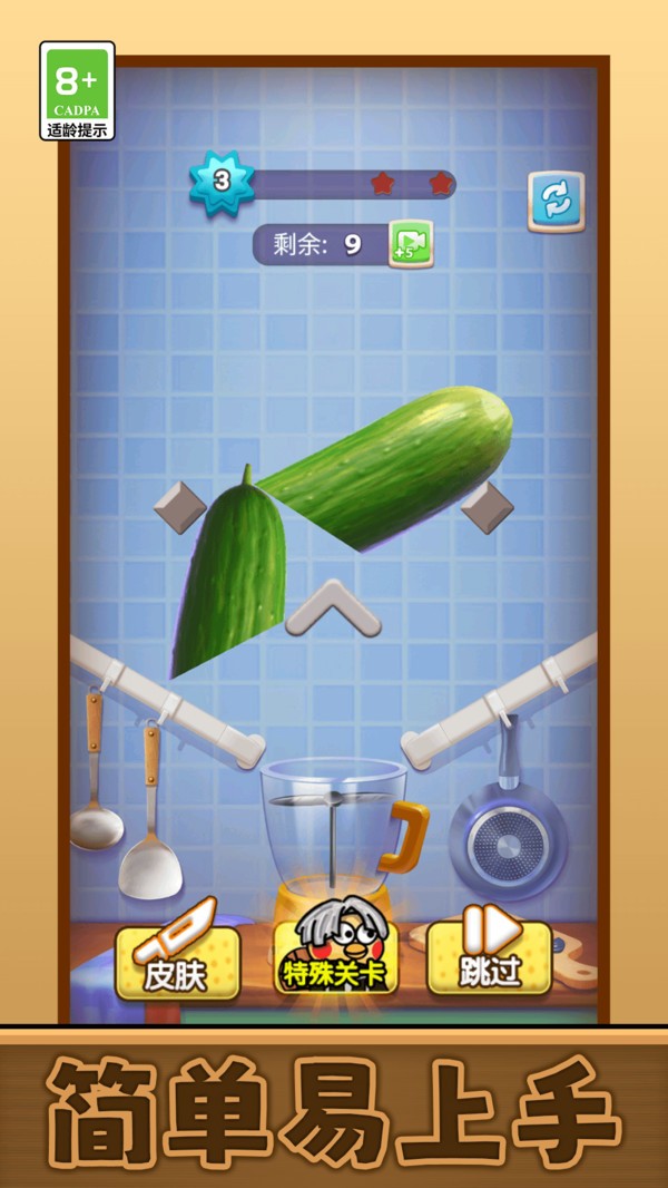 1、玩家掌握基础切割技巧后,可在关卡中灵活运用不同策略,例如调整下刀角度与顺序,从而将水果轻松切成符合要求的小块。