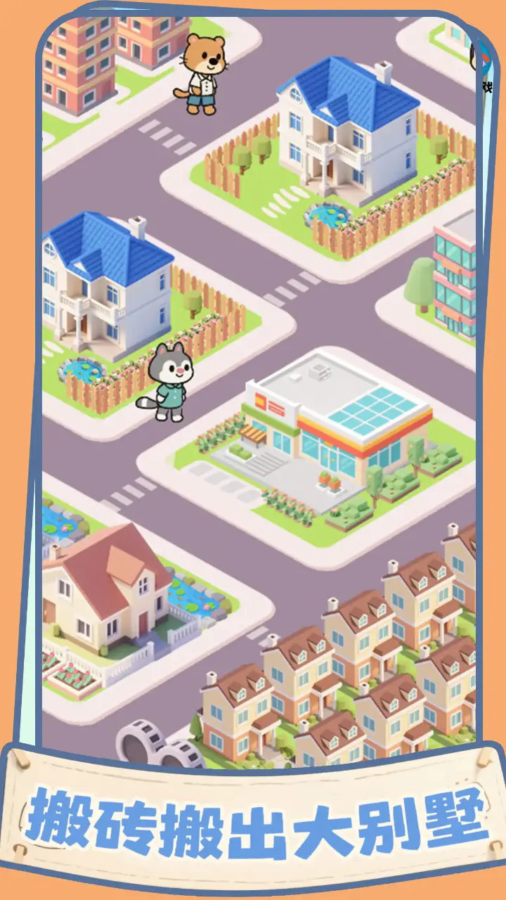 盖个大别墅的建造乐园里,您需安排工人搬运对应颜色的砖块,通过匹配工人衣帽与砖块色彩完成消除任务,引导他们沿固定路线将材料送至指定区域,每成功通关即可建成一栋崭新别墅。