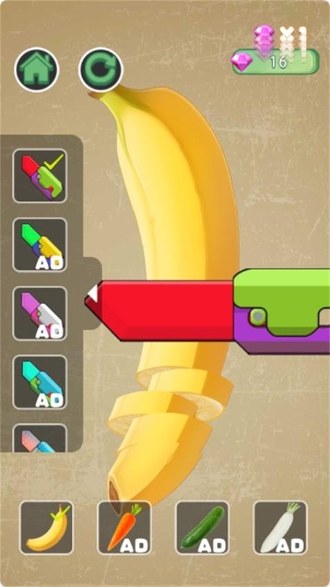 休闲解压合集手游如同一个掌上的解压游戏厅,首页界面清晰地陈列着数十种小游戏图标。点击进入“切水果”游戏,便有多种刀具可供选择,从普通小刀到炫酷光剑。在水果抛出的瞬间,滑动屏幕肆意切割,享受汁液飞溅、一刀两断的即时快感,轻松体验核心的解压乐趣。