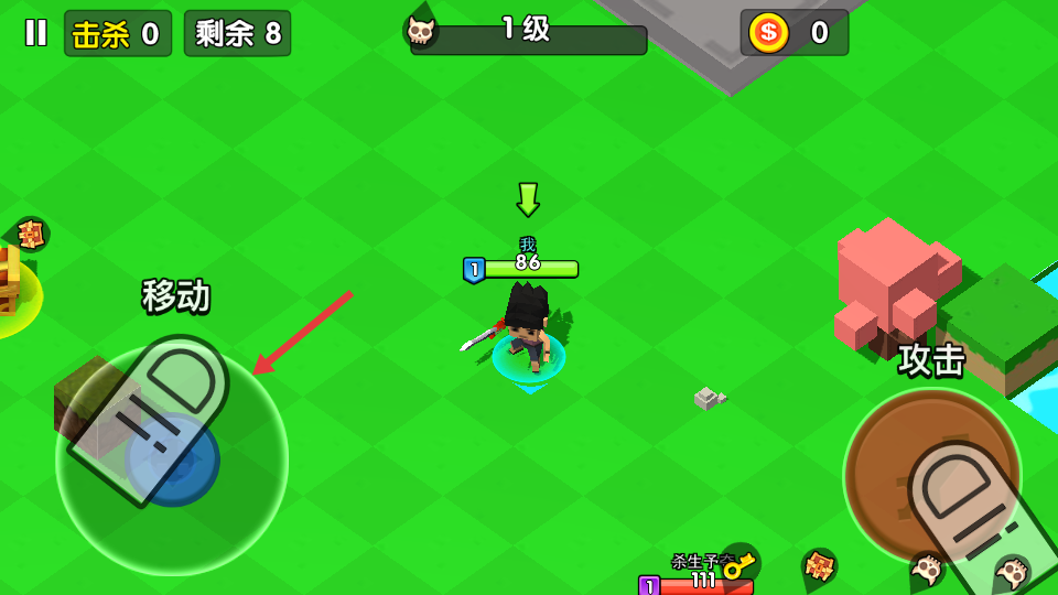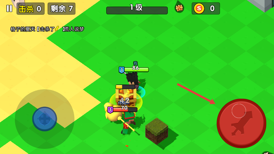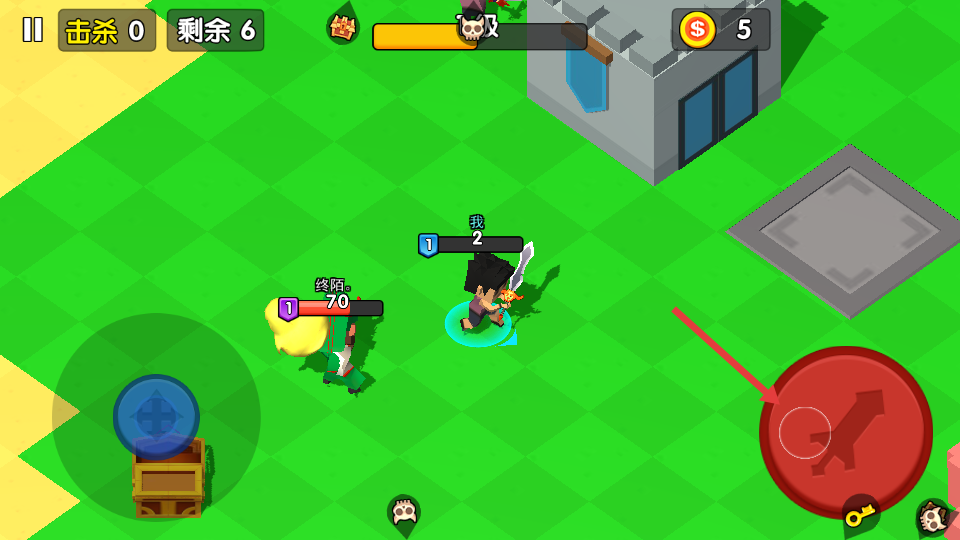 2、在乱斗中收集道具合成升级武器以增强实力击败所有敌人。