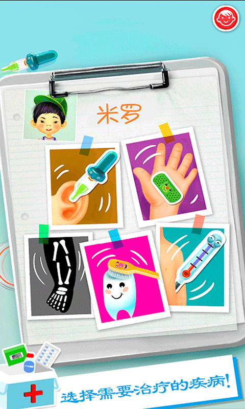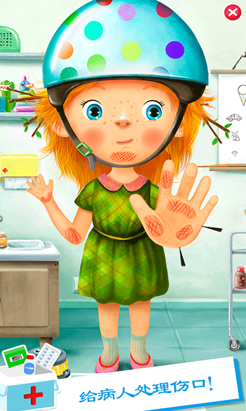 你害怕看医生吗?牙医呢?友好型儿科医生回来帮助你!今天,你就是米加小镇城市医院里面的小小医生,你即将要接受到属于你的任务:照顾三位调皮捣蛋的小病人!调皮的他们常常会因为粗心不小心受伤:骑自行车的时候摔倒,普通的流感导致的感冒,甚至不肯刷牙导致蛀牙和更多!现在需要你用医生的工具去对他们进行包扎,让他们吃药!还要尝试用强大的X光机来定位和进行修复骨折的膝盖!