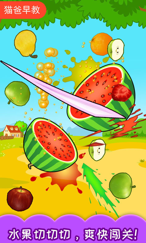 1、滑动手指,将可爱的水果切成两半,炸弹扣分,闹钟加时;