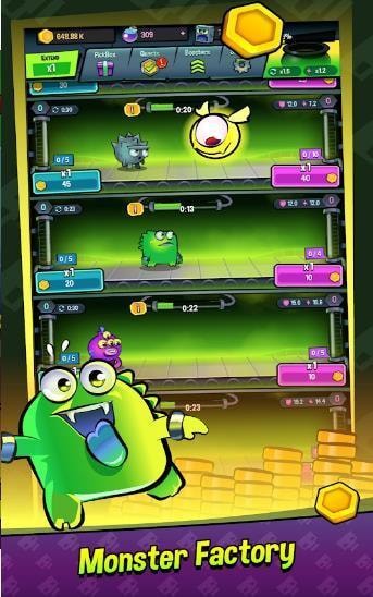 在小怪物制作工厂中,你可以加强升级他们,也能购买一些道具提升撞墙的威力。