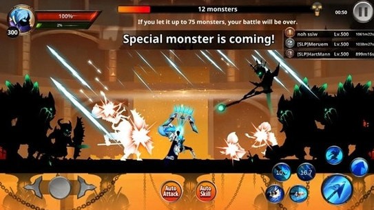 1、设有多个游戏副本,玩家可以组织不同职业的火柴人经营一起组队,这样可以更加轻松的打败boss。