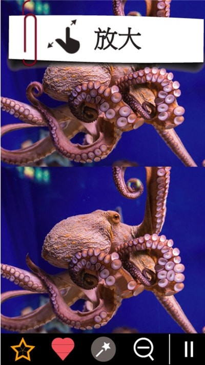 1、一个娱乐性的益智游戏,找出两幅图片之间的区别。在游戏中,你需要充分发挥你敏锐的视觉!