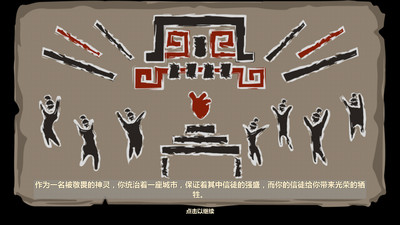 献祭Sacrifices是一款惊悚的模拟经营游戏,你将指导经营一个位于中美洲的原始部落,你需要带领他们发展和重建伟大城市,为此你需要不择手段。