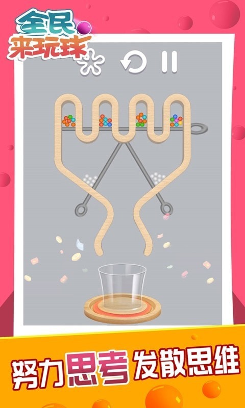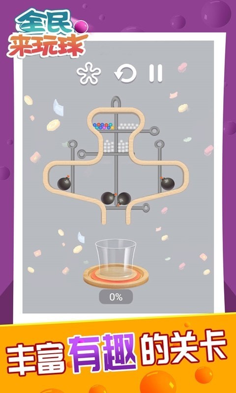 全民来玩球游戏是一款最新推出的益智手游,在这款游戏上,玩家可以在这开始你的玩球之路,在这款游戏上,玩家将会看到有很多小球被堵住了。玩家需要把这些球解救出来,你需要仔细观察,灵活思考,按顺序拉出螺栓,将球收集在玻璃瓶中,注意不要碰炸弹哦,你需要很细心的躲过各种障碍物收集小球,快来点击下载使用吧。